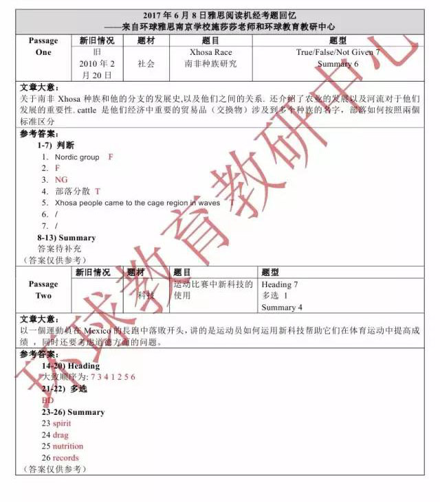 以上就是由环球教育教研中心一线名师们为同学们整理的2017年6月8日最新雅思阅读考试机经及答案的全部内容,更多雅思机经下载、雅思考试、雅思备考复习计划、雅思培训以及雅思考试技巧等相关信息请持续关注环球教育雅思频道!