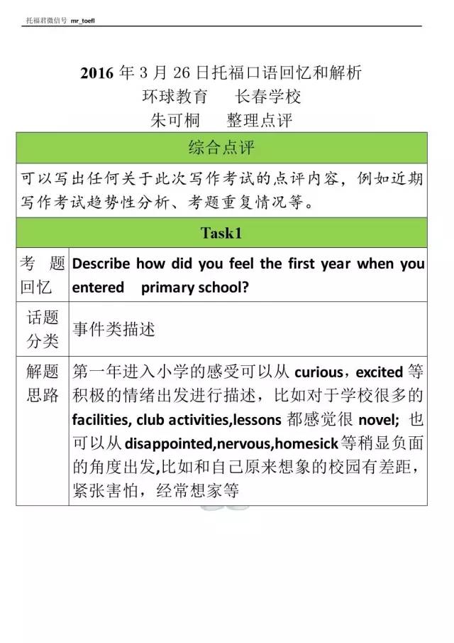 感谢环球教育长春学校的老师们在给大家带来3月26日托福考试当天的内容回忆之后。