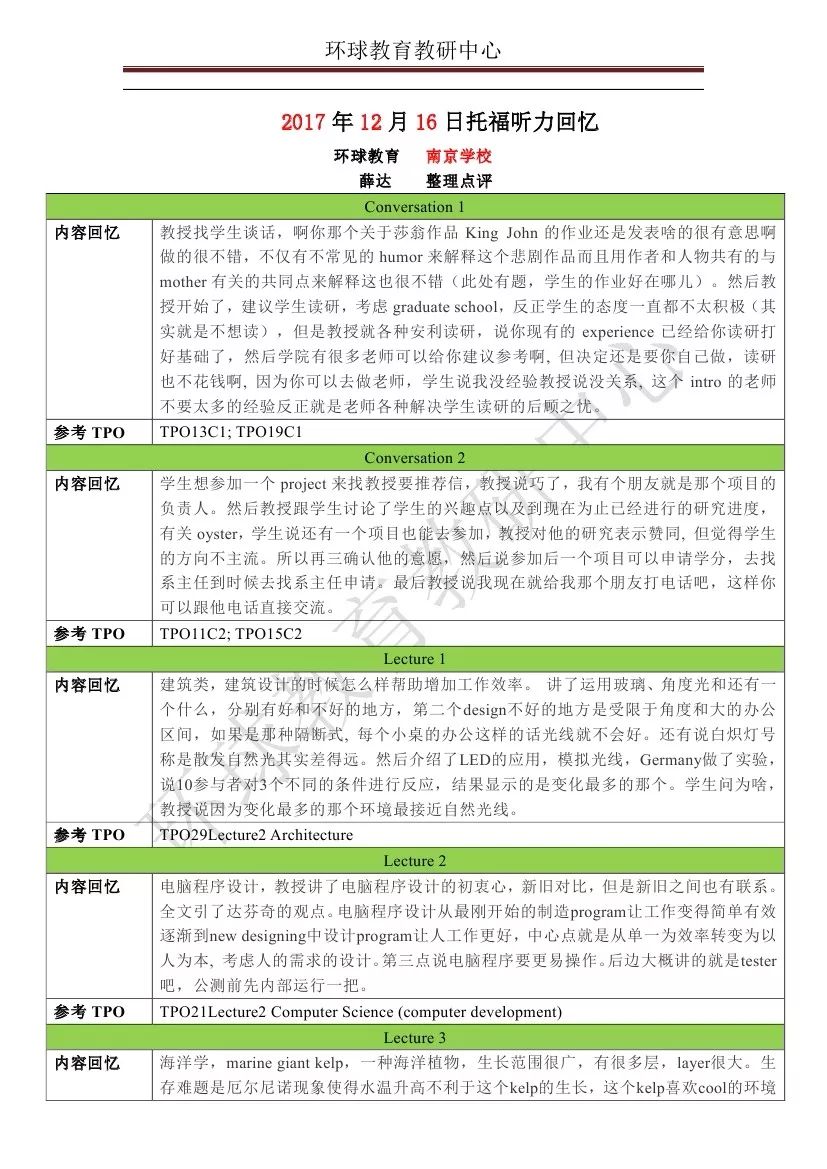 本次考试回忆为大家带来2017年12月16日托福听力考试内容及答案!