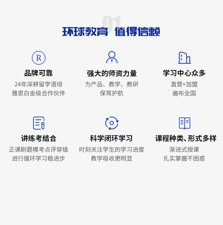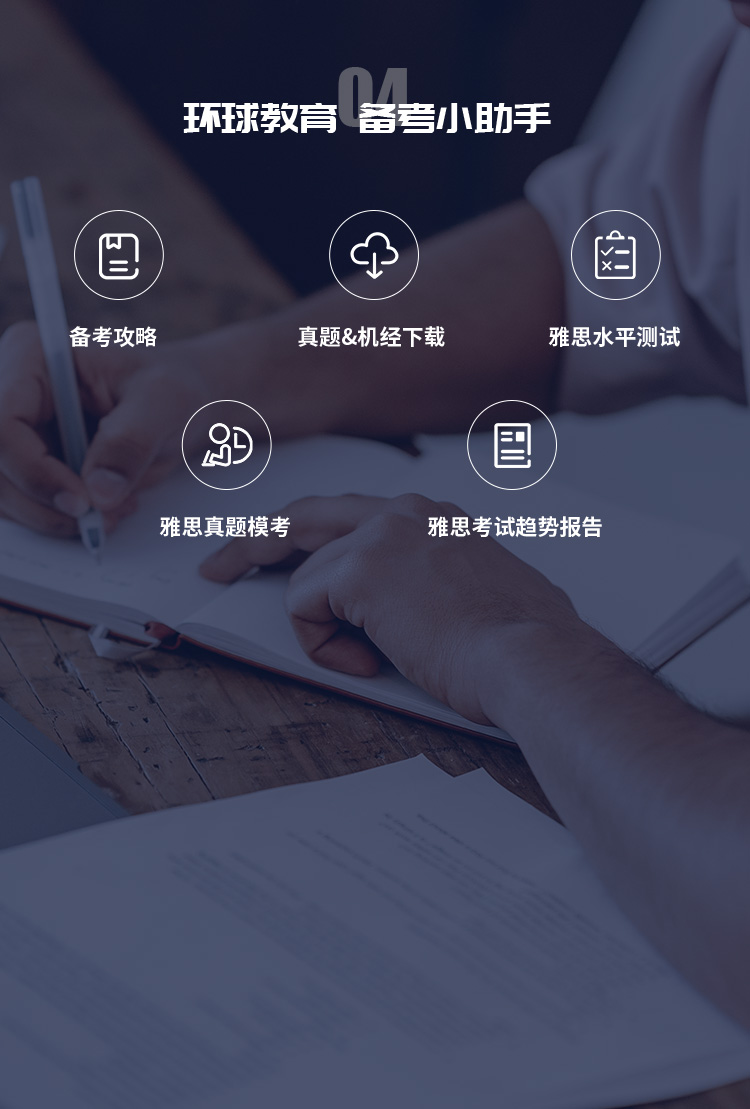 | 5.5分班 | 模考成绩4-5分学员 | 专业的培训老师结合环球教育内部教材,结合该分数段学生特点,听说读写逐项攻克 |